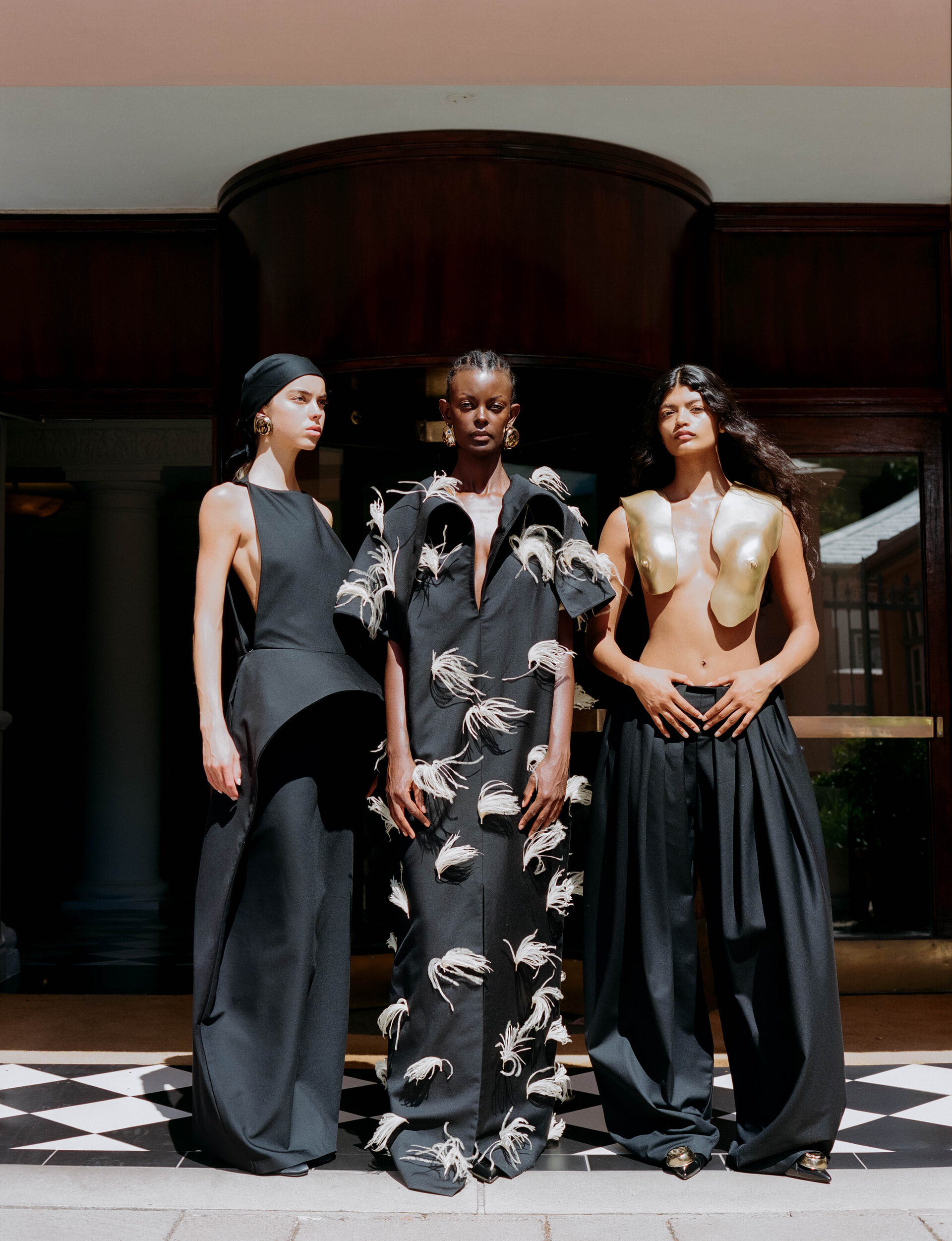 “We worked closely with our accessory partner, Ivka Čiča of Čiča Studio in Johannesburg. She forges everything locally. We collaborated closely to develop the pieces, and we wanted to go big — not just for the sake of it, but because something unlocked. I realised I wanted to be as free as possible with my work. When you can get to that point — where you don’t judge the work too much — you can create and then step back and say, that’s what I created. In the past, I might have been harsher on myself or restricted myself because I thought, that’s not UNI FORM, that feels too this or too that. I’d throw things out and restart.”