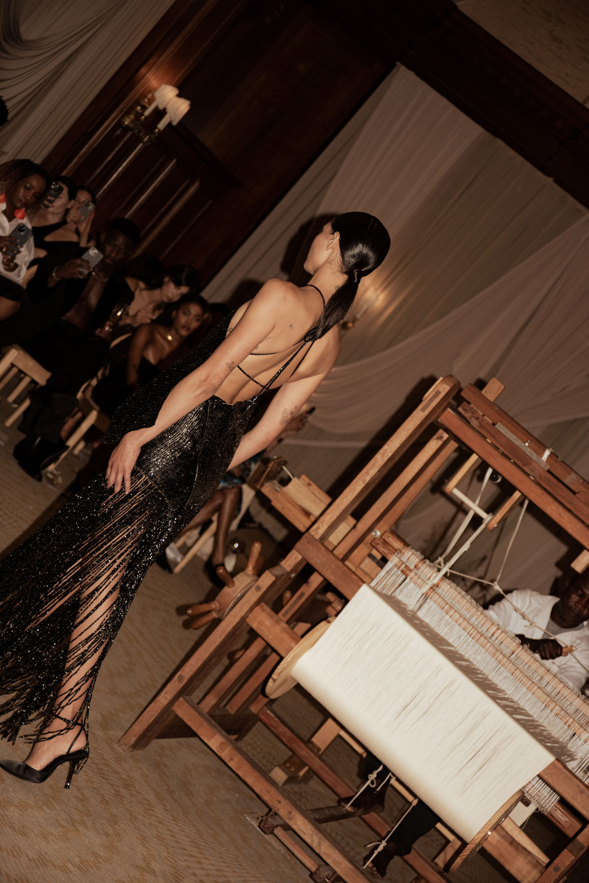 “In terms of asking the audience to sit in silence,” Luke told me, “that was something my creative director Bee Diamondhead came up with. I actually had no idea until afterwards. She told me she wanted the audience to engage with the performers — Tivane, a master weaver from Barrydale Hand Weavers, and Muneyi — and to have the utmost attention and respect for their craft. That’s what we stand for: giving our artisans, crafters, and performers the respect they deserve. And in the world we live in, it’s so hard to keep people’s attention.”