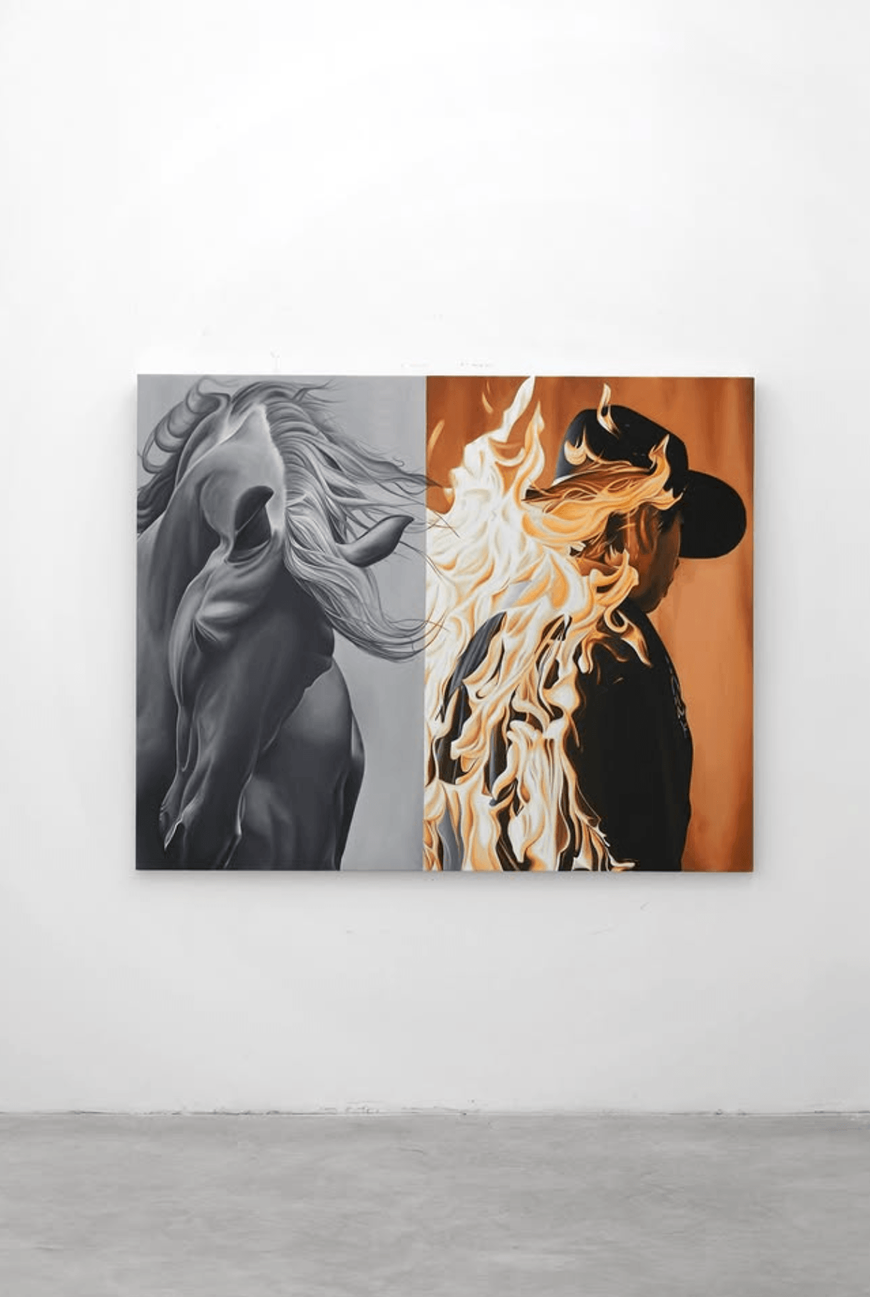 Born in 1992 and based in Valencia, Ricardo Rodriguez Cosme paints horses and cowboys with a classical hand and a distinctly contemporary sensibility. His work interrogates masculinity as image—branded, performed, and emotionally restrained.