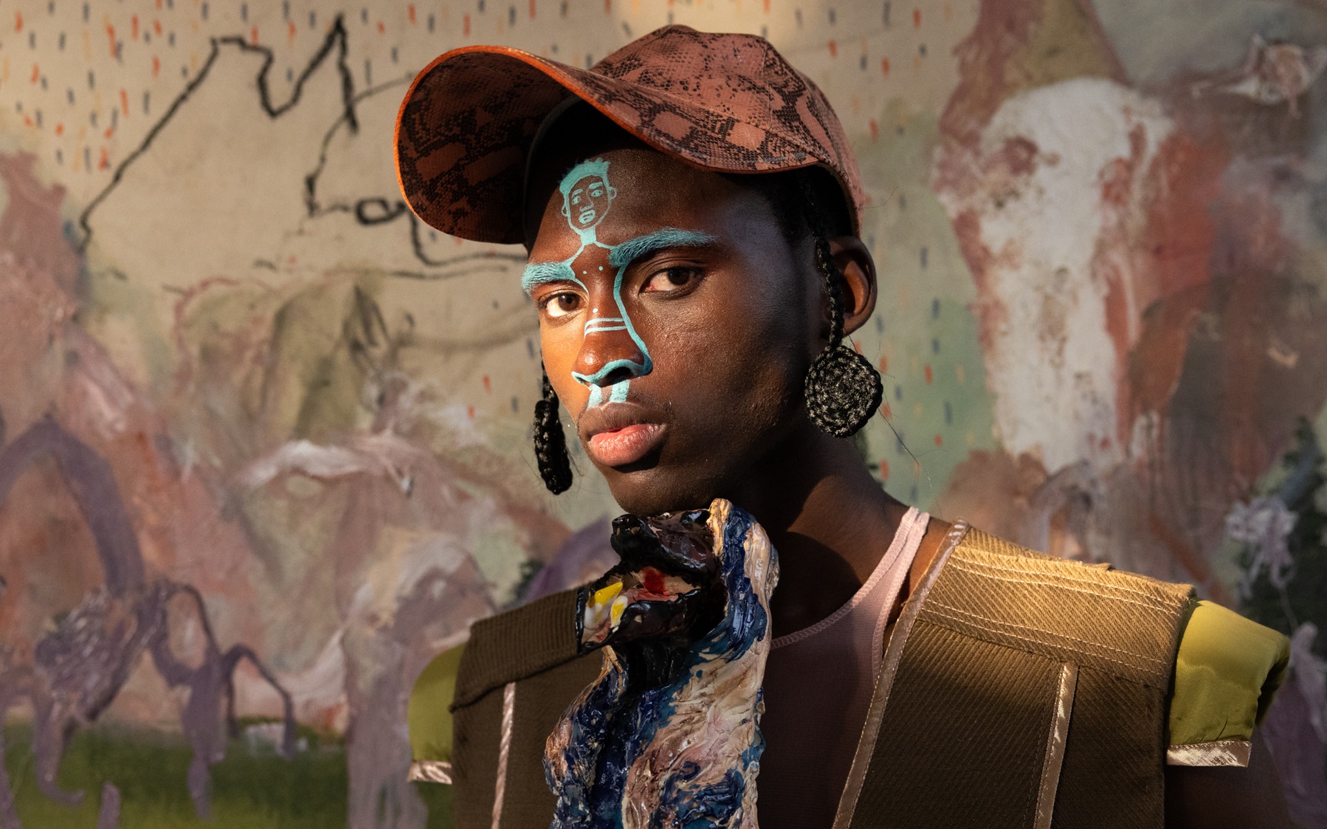 Signature lumo pops, inspired by the PPE overalls of Viviers’ childhood in a galvanising factory, reappear in holographic and high-frequency accents.